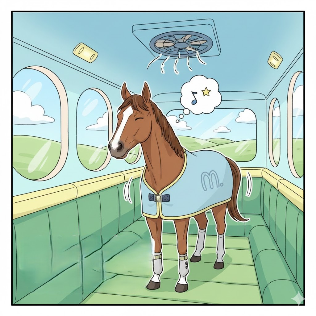 馬は車に積み込まれると目的地に着くまでは立ちっぱなしとなるため、立ったまま寝ることもある。そのため馬にはストレスを与えないよう、馬房内の環境は馬にとって最適に保たれているのだ。例えば、馬は暑さに弱い動物なので、夏場は人間には肌寒い20℃くらいの温度に馬房内のエアコンを設定しているという具合だ。
