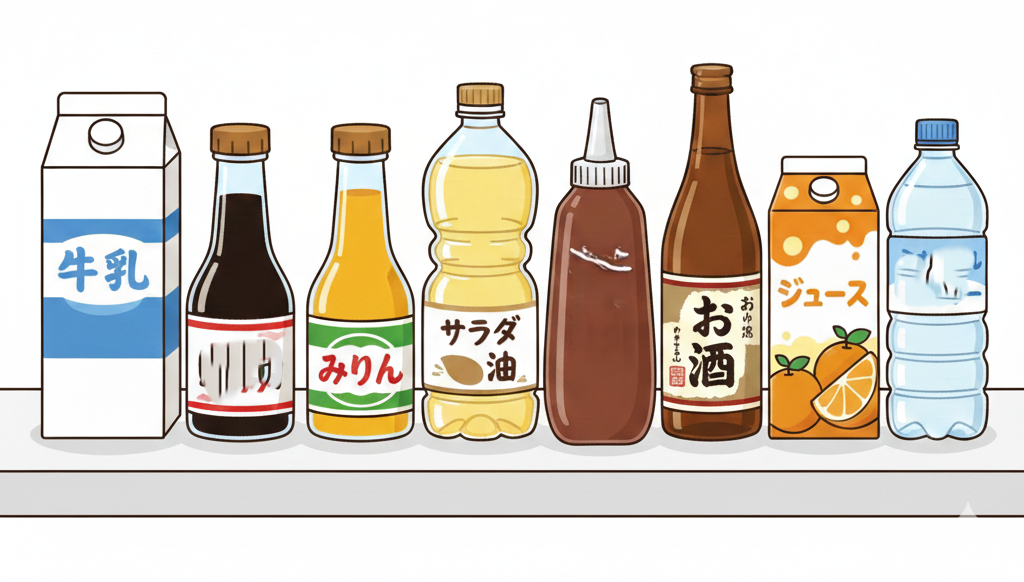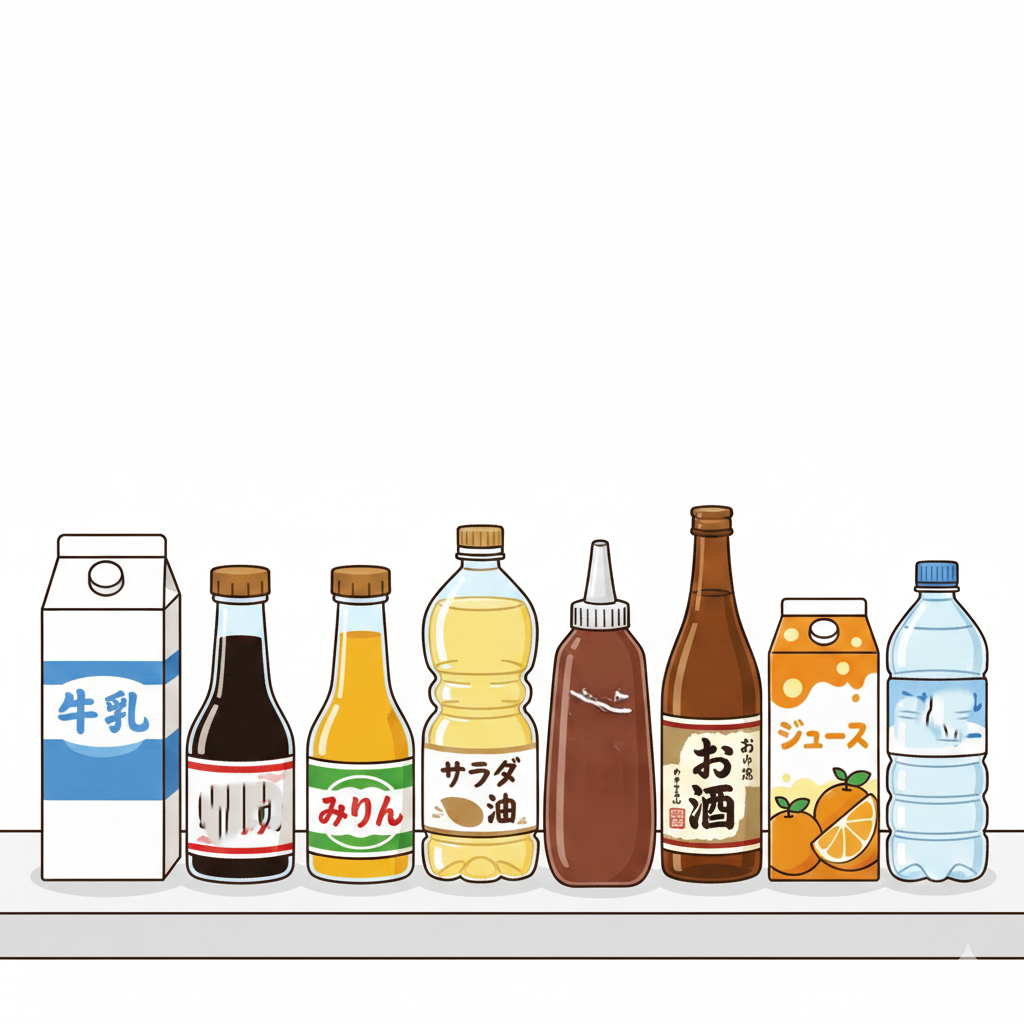 牛乳、醤油・みりん、食用油: サラダ油、液体チョコレート、お酒、液糖、ミネラルウォーター、硫酸・塩酸・硝酸、エタノール(アルコール)液体窒素、液体酸素水酸化ナトリウム(苛性ソーダ)生コンクリート、水、潤滑油、噴尿・汚水(バキュームカー)など。