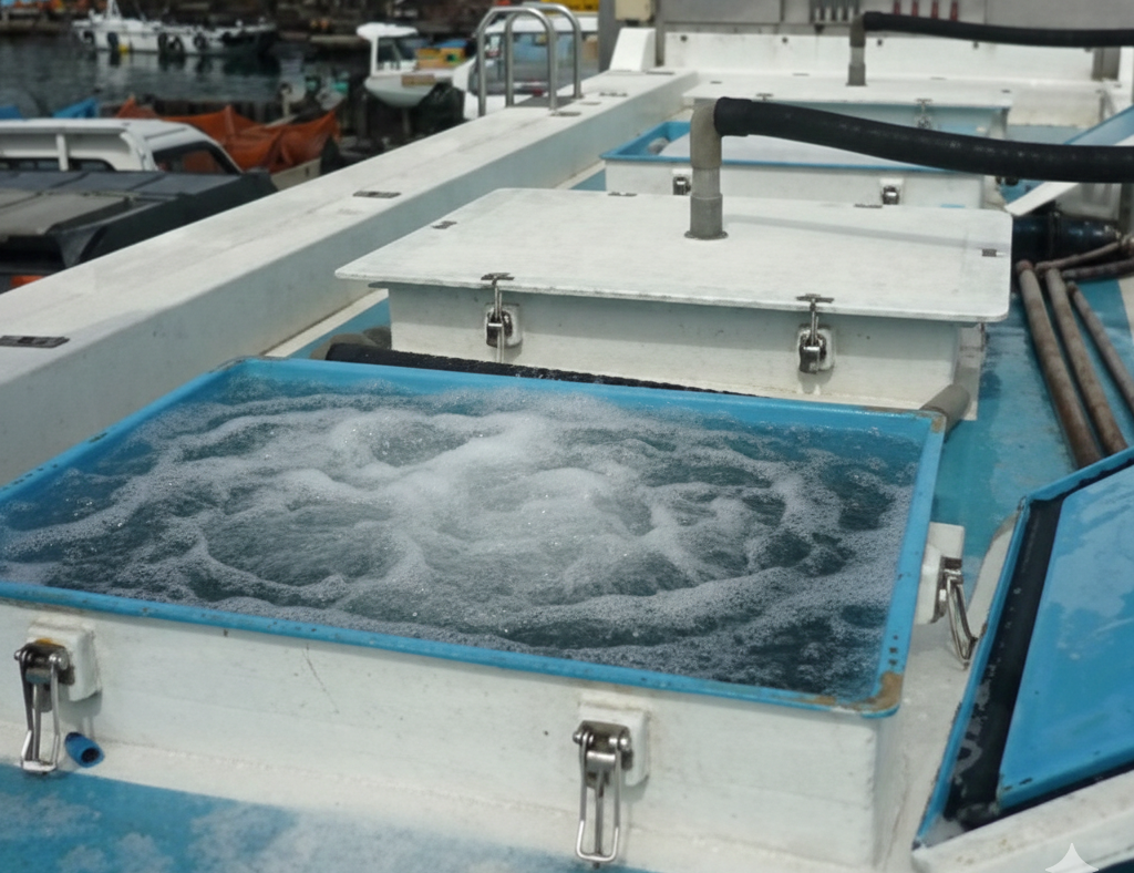 長時間輸送での大敵は魚から捏排泄物。この排泄物から出るアンモニアが毒になるからだ。その対策として、多くの車両には、微細な泡(マイクロバブル)を発生させる装置がついている。この泡が汚れを吸着して浮かび上がらせるため、フィルターだけに頼らず水を綺麗に保つことができる。