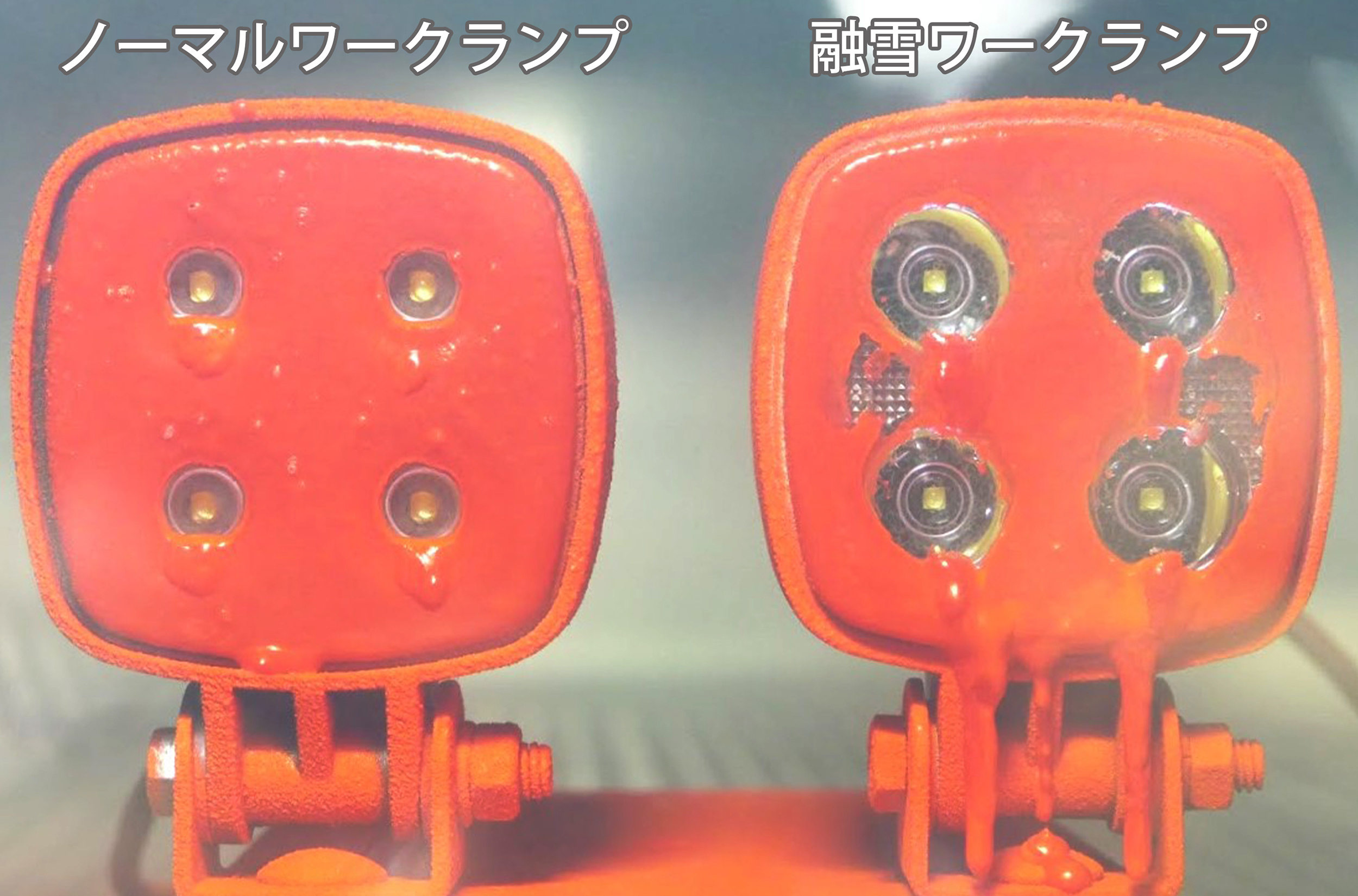 このように進化を果たしたワークランプだが、実は決定的な弱点を持っている。それは、雪による影響だ。もちろん、レンズなどにはしっかりとシールがされているから、雪が溶けることでシステムに水が侵入し、ショートするなどといったことはほとんどない。問題はレンズ部分に氷や雪が付着して、十分な光量を保てなくなることだ。