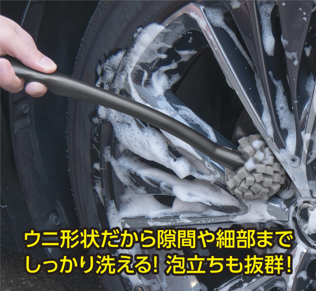 ブラシはアルミを傷つけにくい豚毛製が好まれているが、最近ではさらに進化したスポンジブラシを使用するドライバーが増えた。素材にはポリプロピレンが採用されており、毛の部分を細かな網状にすることで、固着した頑固な汚れをきれいに掻き出すことができる。ただ、ホイールのデザインによっては細かなところにブラシが届かないことがある。このような場合は、使い古した歯ブラシなどを利用すると便利だ。