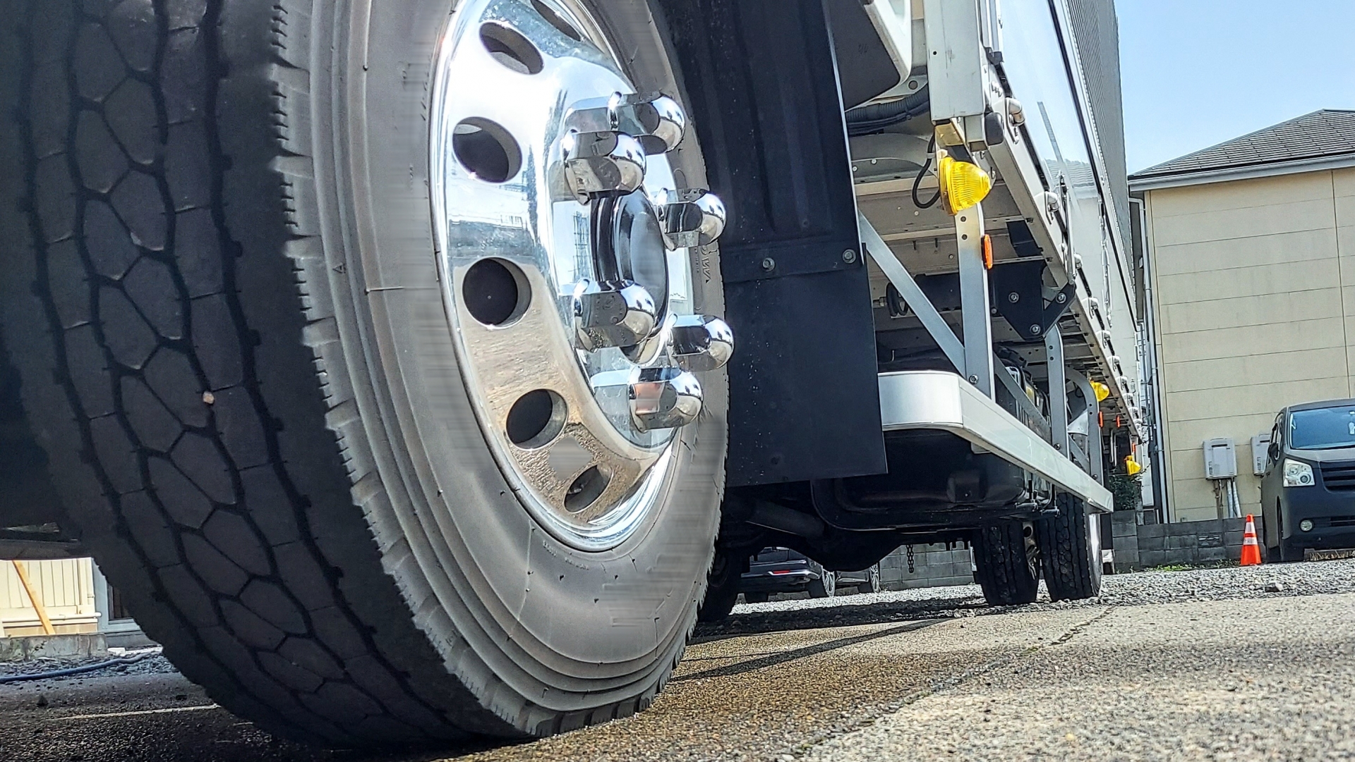 同時に、きれいに手入れをしておくことも忘れてはいけない。とくにトラックは、長距離走行や悪路走行をすることも多いので、タイヤやホイールに汚れがつきやすい。土埃に加えてピッチ・タール・ブレーキダストなどが付着すると、見た目にかっこうのよいものではないといえよう。このように汚れた足回りで荷主や着荷先を訪れれば、「荷物の扱いも雑なのでは?」という誤解を招きかねないのだ。