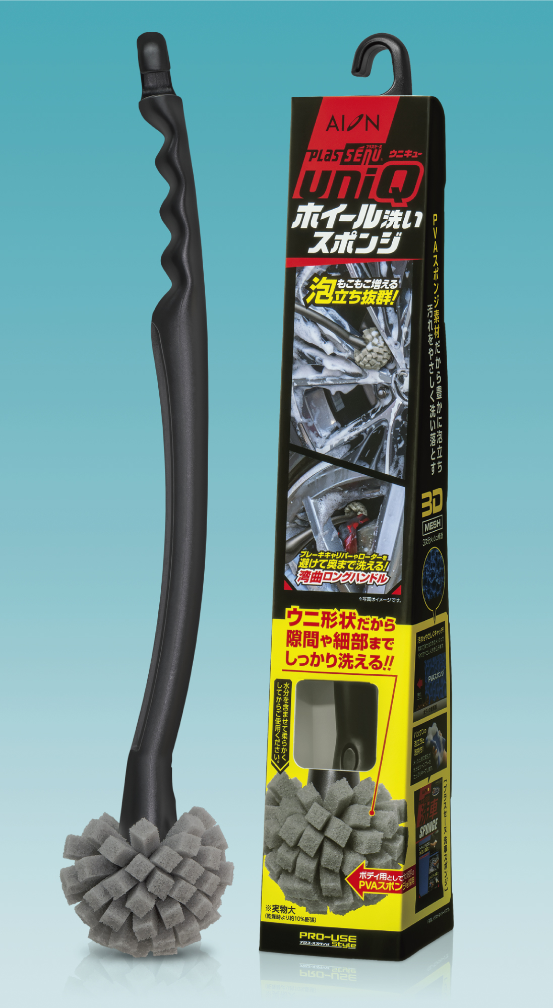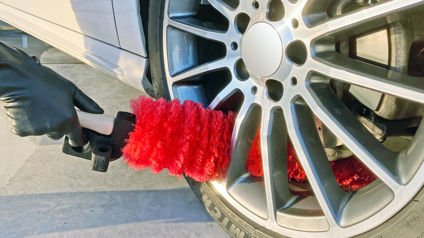 ブラシはアルミを傷つけにくい豚毛製が好まれているが、最近ではさらに進化したスポンジブラシを使用するドライバーが増えた。素材にはポリプロピレンが採用されており、毛の部分を細かな網状にすることで、固着した頑固な汚れをきれいに掻き出すことができる。ただ、ホイールのデザインによっては細かなところにブラシが届かないことがある。このような場合は、使い古した歯ブラシなどを利用すると便利だ。