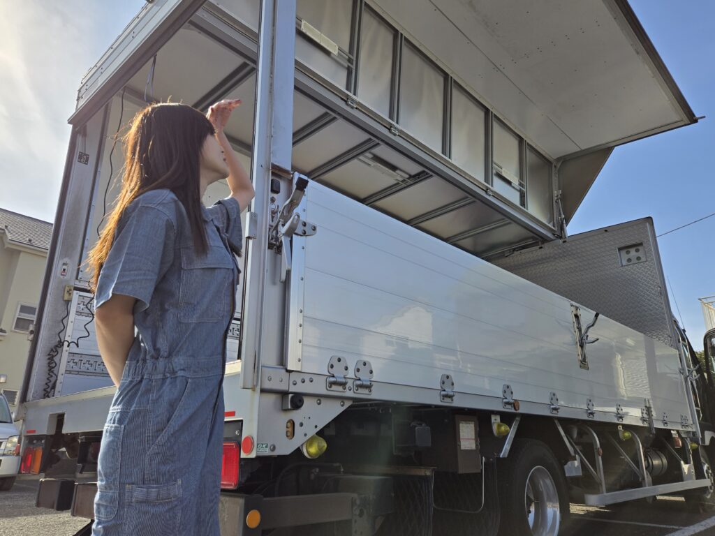 トラックドライバーや物流関係者でないと触れることや使うことがほとんどないパワーゲート。これを動かすコントローラーやスイッチを触るだけでも異次元の話なのだが、実際に自分の手で操作し、パワーゲートの上に乗っているだけで非日常的な感覚に陥るらしい。