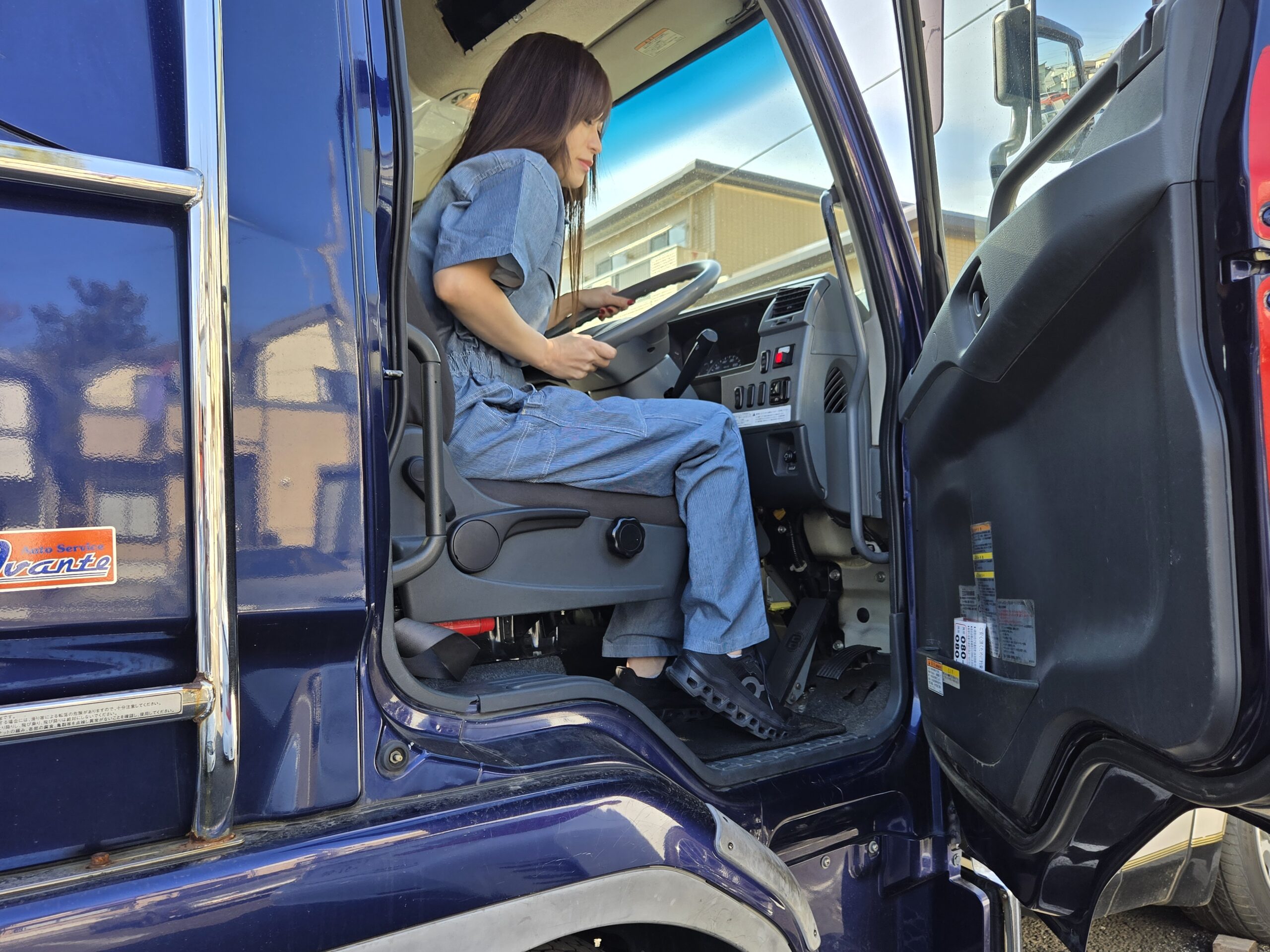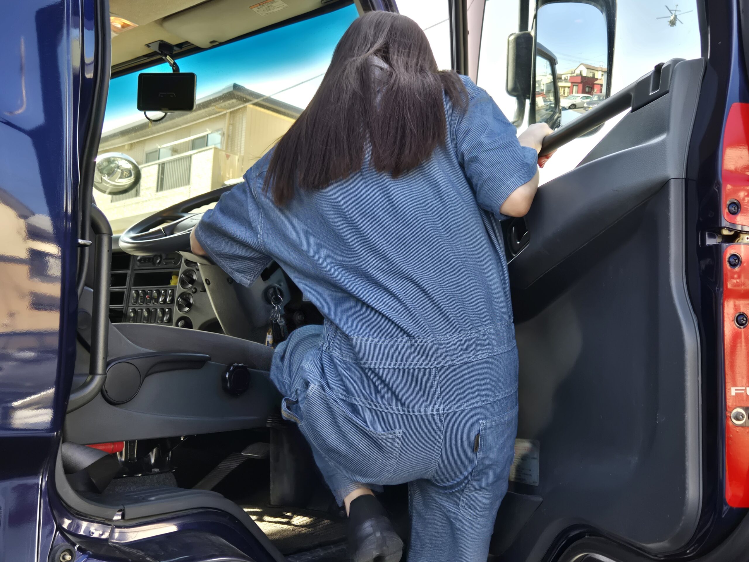 とにかく車高が高いトラックは、運転席に乗り込むのもトラック初めて女子には一苦労。どこをつかめばいいのか? どうやって這い上がればいいのかを悩んでしまう女の子は多い。乗用車のように「乗り込む」のではなく、ステップを2〜3段「登る」という感覚が新鮮なのだ。