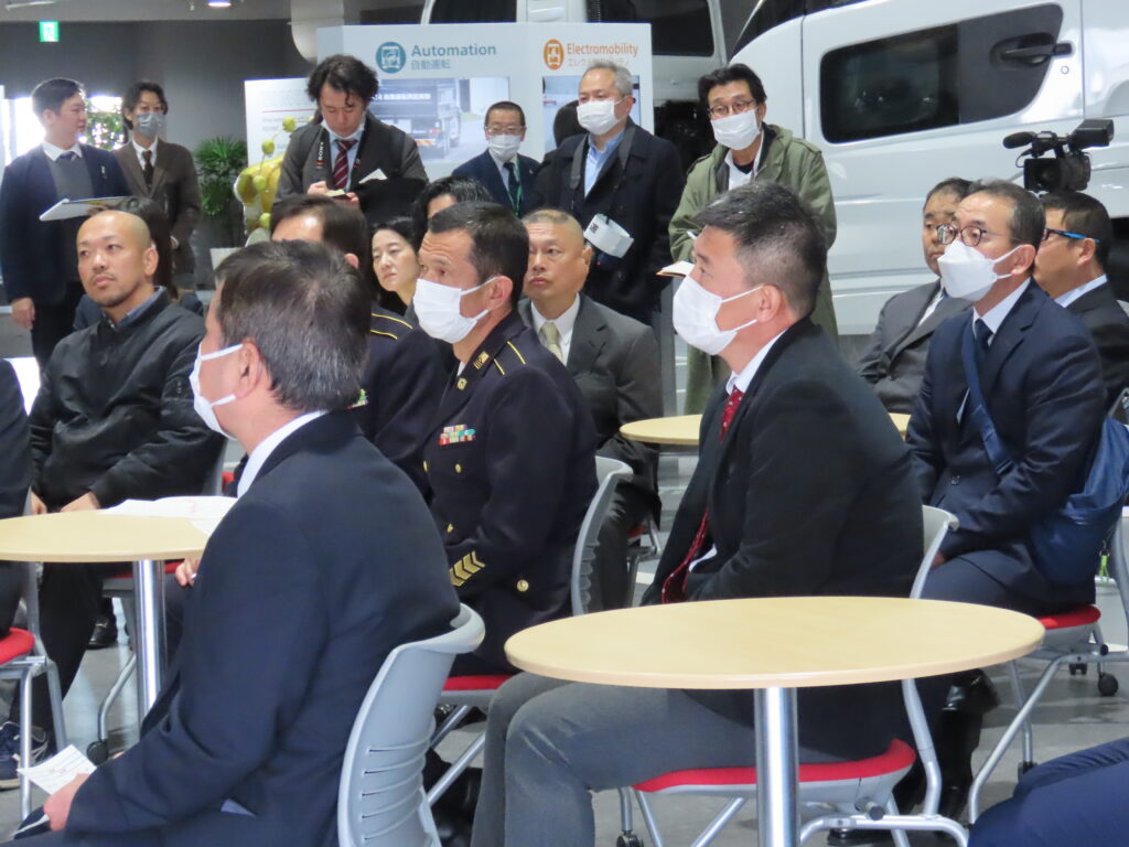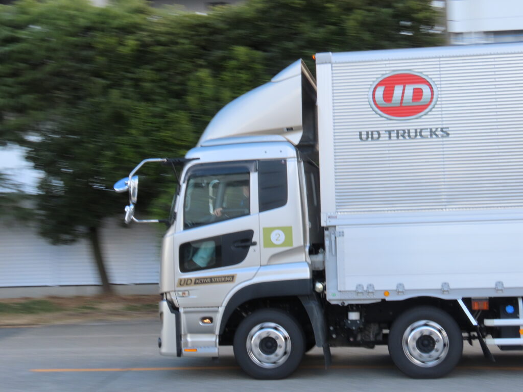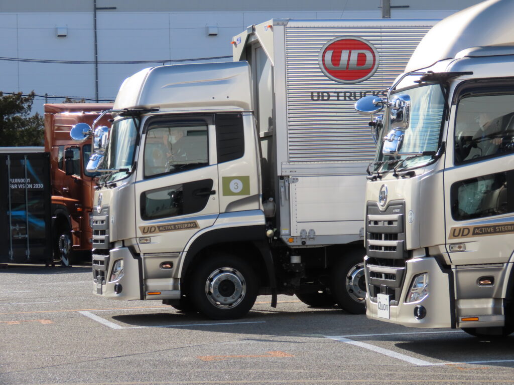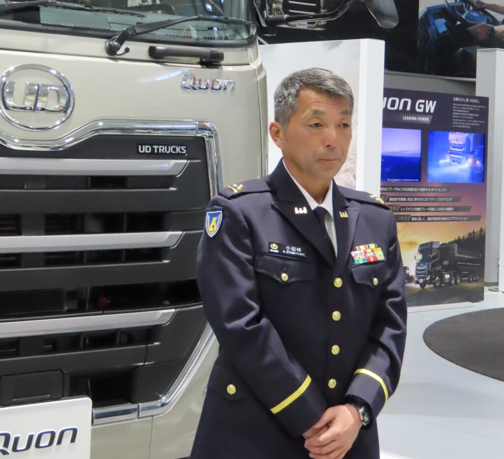 場所はUDトラックスの本社で、同社からは最新の大型トラック「クオン」などが試乗用に提供されている。参加対象者は陸上自衛隊だけではなく海上・航空自衛隊にも広げられ、大型運転免許の取得も義務付けられてはいない。埼玉県トラック協会役員によると「自衛隊員は厳しい規律の中で過酷な訓練経験していることもあり、職務に対して熱意をもって向き合う姿勢が感じられる」とのことで、所属や免許の取得にはこだわらなかったようだ。