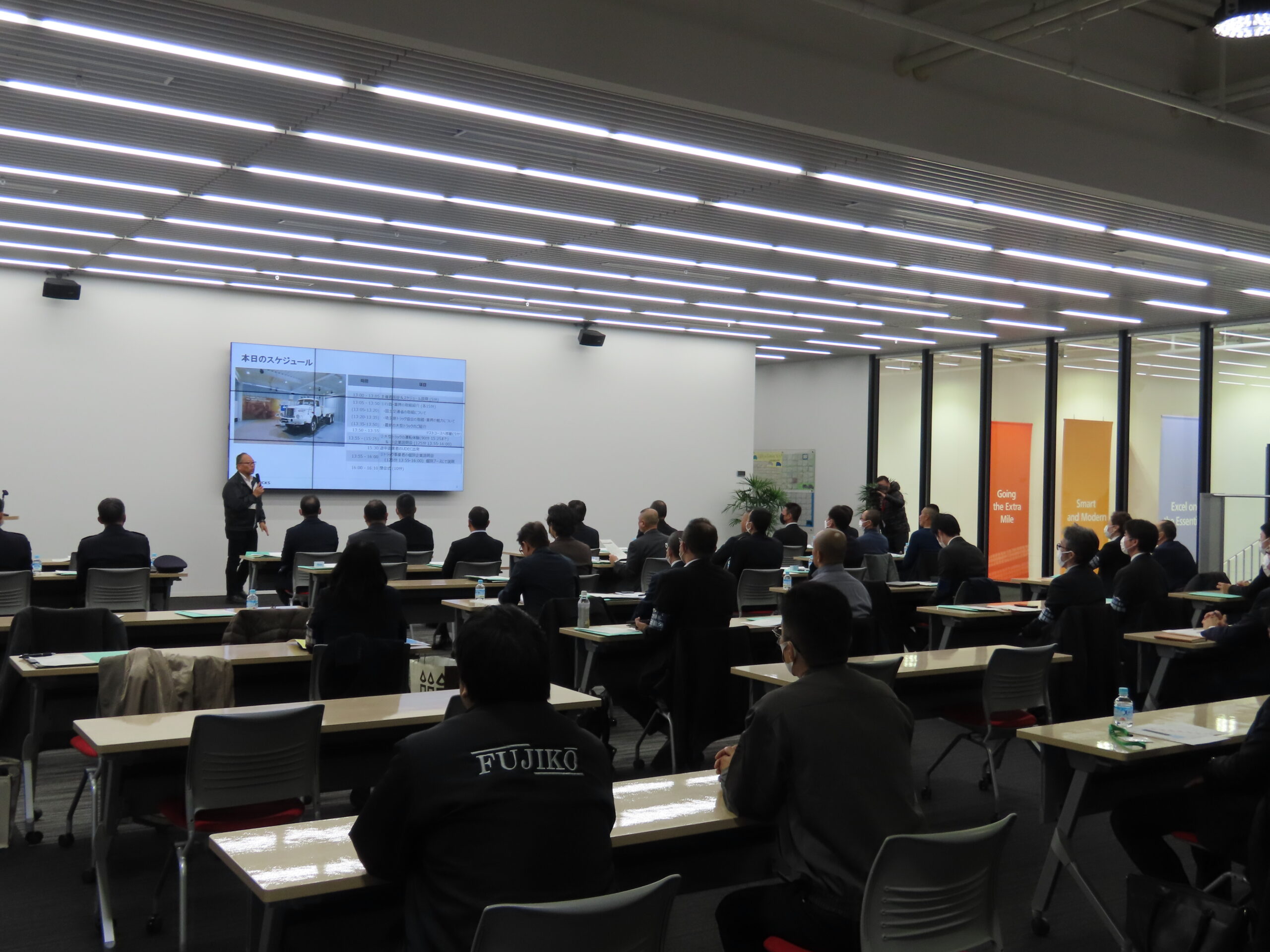 場所はUDトラックスの本社で、同社からは最新の大型トラック「クオン」などが試乗用に提供されている。参加対象者は陸上自衛隊だけではなく海上・航空自衛隊にも広げられ、大型運転免許の取得も義務付けられてはいない。埼玉県トラック協会役員によると「自衛隊員は厳しい規律の中で過酷な訓練経験していることもあり、職務に対して熱意をもって向き合う姿勢が感じられる」とのことで、所属や免許の取得にはこだわらなかったようだ。