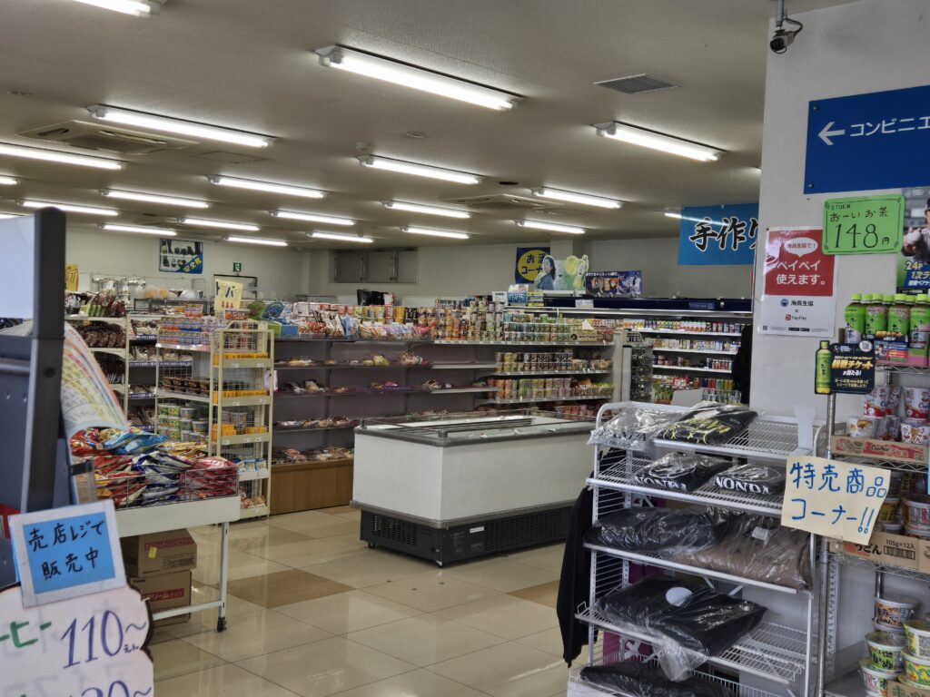 外観は普通のコンビニや売店のような佇まいだったが、わざわざ海員生協という文字を大きく掲げているからには何かあるのだろうと早速近づいてみた。海員と書かれているので、船や港などの関係者のみが使える施設なのかと思っていたが、実際にはタクシーの運転手や普通の人たちも店内に入っていたところを見ると、誰でも使用できる施設であるようだった。