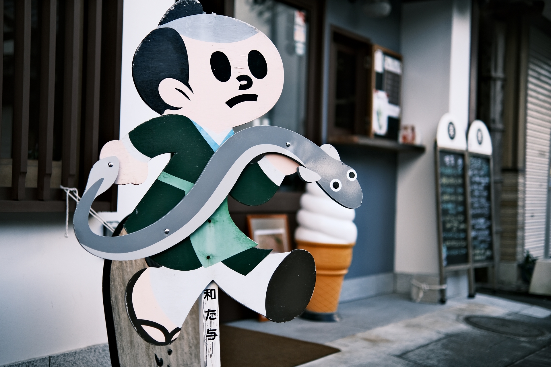 飛び出し坊やのデザインには大きく分けて3つの系統がある。まずそのうちの一つだが、「とび太くん」型(0系)と呼ばれるものは滋賀県で見られる。もっともスタンダードな切り抜きタイプで赤いシャツに黄色いズボンのシンプルな配色が特徴。ちなみに0系というネーミングもみうらじゅん氏が名付けたものだ。